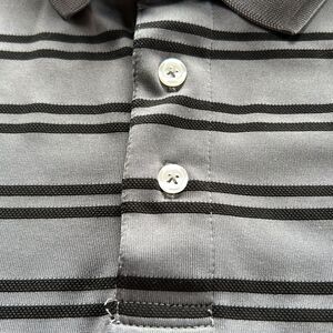 Basic edition, big and tall gray and black stripe button collared golf shirt 4XL