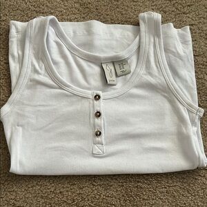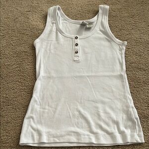 Two basic tanks. Black ribbed scoop neck. Brand new. (XS) White ribbed with button front detail. (XS). White was worn and washed once.