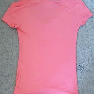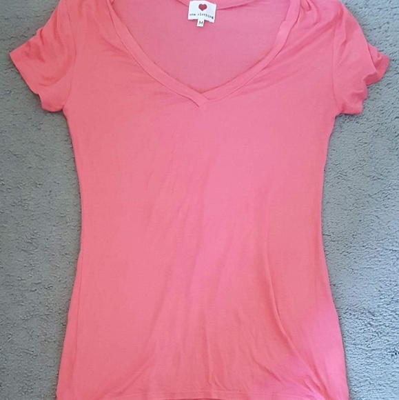 Thin, light weight, basic fitted tee. Coral. Very cute and comfortable! The tag is gone but it has never been worn.
