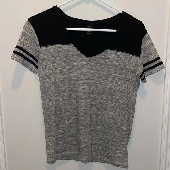 Lightweight and comfortable basic womens t-shirt. Black and gray XS