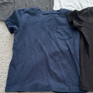 Set of four short sleeve tees by Jumping Beans. Includes black, white, gray, and blue colors. Comfortable and stylish with a pocket detail.