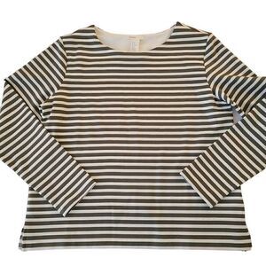 Basic/Basique Women's Olive Green & White Striped Pull-Over Top Medium