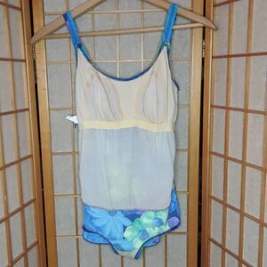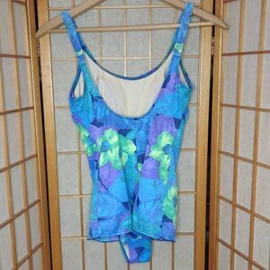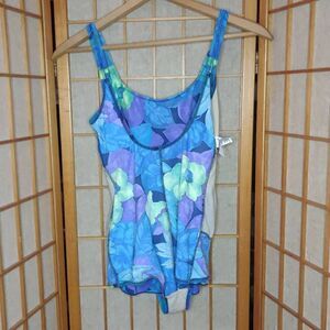 Basic Editions Women's Floral Faux Tankini One Piece Swimwear Blue & Purple Size 11/12
