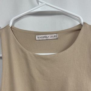 the perfect basic! tan high neck cropped tank. super soft and comfortable. lined. super flattering