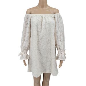 Basically Me Winter White Off The Shoulder Lace Long Sleeve Dress