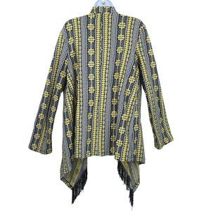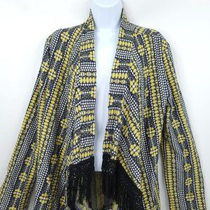 Basically Me Womens Open Cardigan Size M / L Yellow Black Fringe Kimono Boho