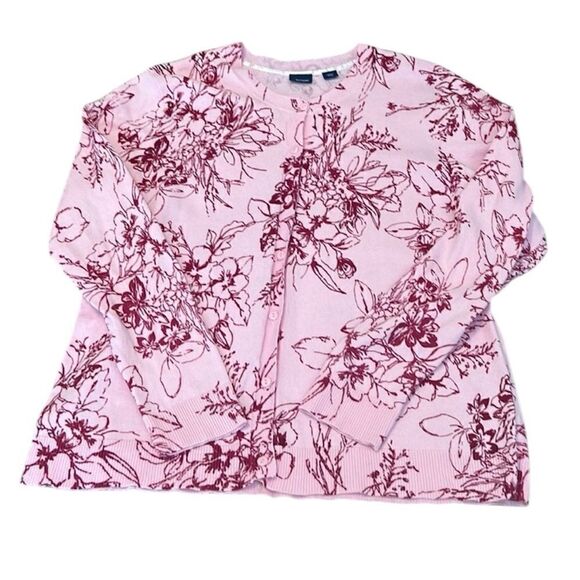 Basic edition size XL pink with red flowers button front cardigan GUC