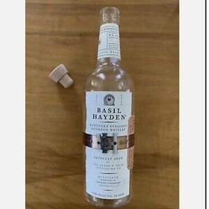 Basil Hayden Kentucky Bourbon Whiskey 750 ml bottle (empty). These bottles are often used in crafts. Example pictures of possible crafts are attached