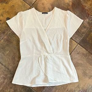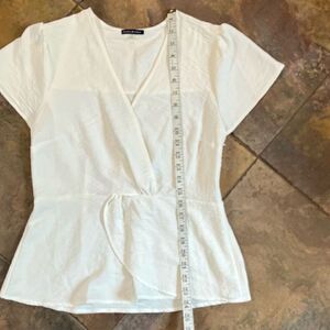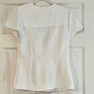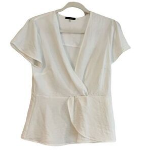 Basil & Lola White V-neck Short Sleeve Blouse Medium