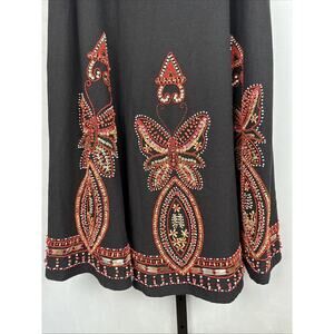Basil & Maude Beaded Maxi Skirt Womens 10 Black Embellished Butterfly Boho Artsy