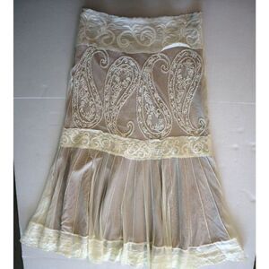 Basil & Maude Women Sz 8 Beige Beaded Heavily Embellished A-Line Midi Skirt