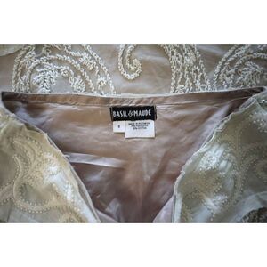 Basil & Maude Women's Sz 8 Beige Beaded Heavily Embellished A-Line Midi Skirt