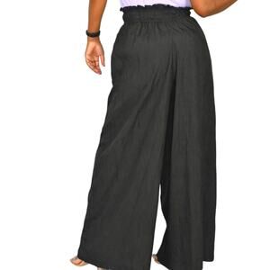 Basin + Range pants FEATURE a wide elastic waistband and wide palazzo pant legs. Crinkled lightweight fabric. High rise. Side pockets.