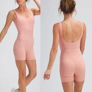 Basin + Range Women's Size Pink Biker Short One Piece Ribbed Romper Athletic Gym