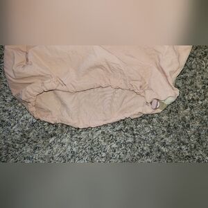 They are a waterproof workout material and have adjustable ankles so they can be as wide or narrow as you want!
