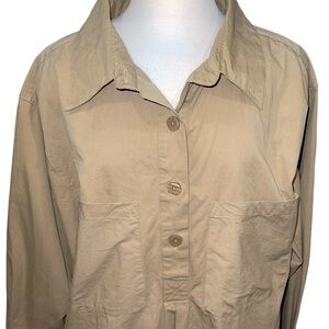 Basin+Range Women's Dress Size XL Tan Long Sleeve Collared Button Up 100% Cotton