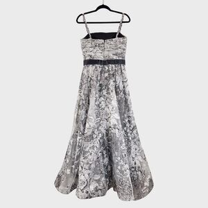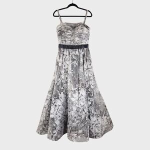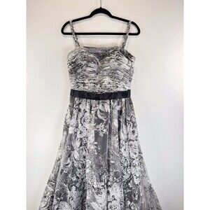 Basix Black Label Dress Gray Floral Maxi Chiffon Overlay Evening Gown Size 6