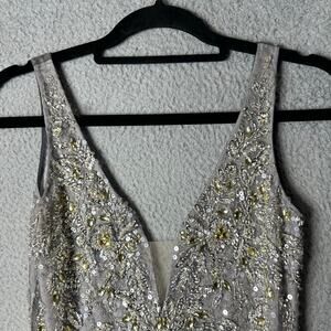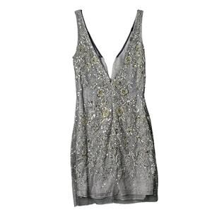 Basix Black Label Dress Women 0 Silver Sleeveless V Neck Sequin Prom Formal READ