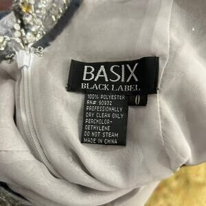 Basix Black Label Dress Womens 0 Silver Sleeveless V Neck Sequin Prom Formal READ
