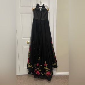 Basix Black Label Tulle and Lace Gown with Floral Appliqués