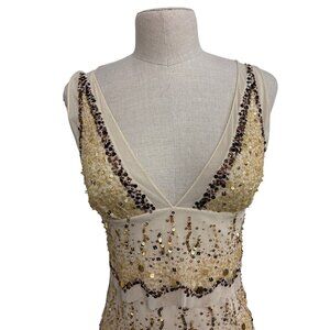 Basix II Gold Sequin Beaded Sleeveless Cocktail Dress Burlesque Style 4P