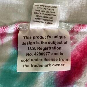 Description: Colorful Colorblock Spin-Art Tie Dye Upper and White Lower Section Graphic Tee "Wyoming Est. 1890" Long Sleeve Hoodie Top with Sporty Double Stripe on Sleeve.