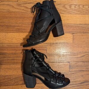Baske California black leather gladiator caged wrap open toe ankle boots