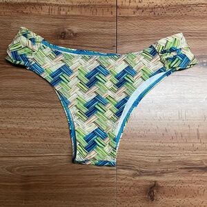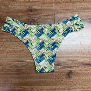 Bikini bottom with draped sides. Bikini bottom is lined in the front and back