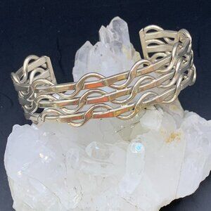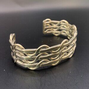 Basket Weave Vintage Mexico Woven Sterling Silver Bold Cuff Bracelet 925