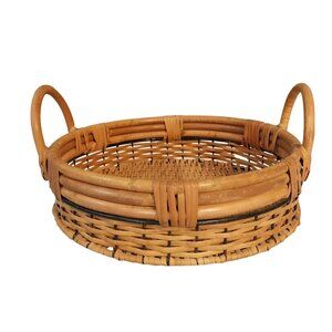 Basket Wicker Rattan Bamboo Woven Tray Basket With Handles