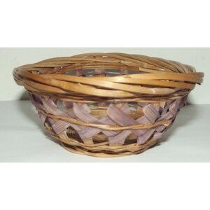 Basket small 5.5" oval woven tiny open trinket brown purple