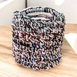 Basket with Handles Crochet Handmade One of a Kind Scrap Yarn Basket Brand New