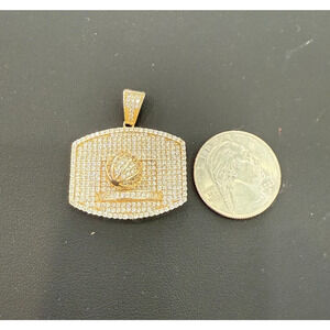 Basketball Hoop Pendant 925 Sterling Silver Gold Plated Iced CZ Charm 1.4 inch