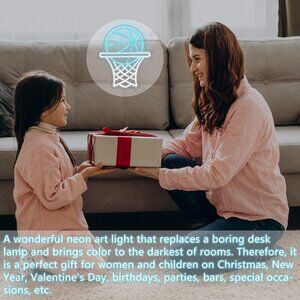 The lights are bright but not dazzling, creating a romantic atmosphere for your room. Illuminate your man cave or basketball themed room with this eye-catching Basketball Hoop Neon Sign.