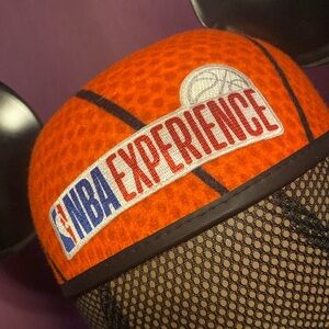 Vibrant Mickey ears hat with basketball design. From the now closed NBA Experience attraction that used to be at Disney Springs in Walt Disney World. Fun hat for basketball games, theme park days, Halloween. In very good condition with some small scratches on one ear; see photos. Has elastic chin strap. One size fits most adults.