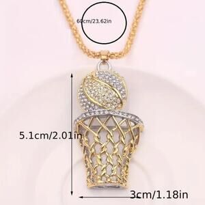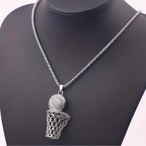 Basketball Necklace Silver Tone with Rhinestones 24” Chain