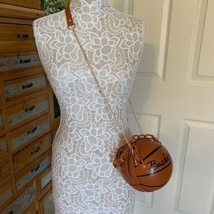 🏀🏀Basketball Shaped Crossbody Handbag Chain Handle -Brown🏀🏀
