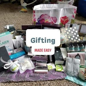 Baskets are filled with all sorts of goodies such as Bath and beauty and cosmetics as well as other products such as photo albums