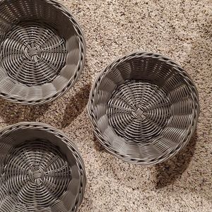 Three small circular dark grey baskets. Note my hand in the third picture to get an idea of how big they are.