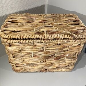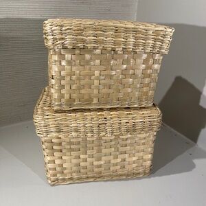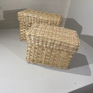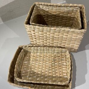 Assorted baskets for storage, decor, etc. Large basket, 12" wide, 7" deep and 9" high; smallest basket, 3" wide, 3" deep and 4" high; Set of 2 nesting baskets--7" wide, 4" deep and 4 1/2" high; 5 1/2" wide, 3 1/2" deep and 4" high.