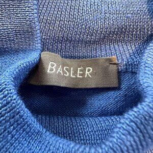 Basler Sweater Turtleneck Ribbed Knit Long Sleeve Wool & Silk Blend Blue Women's