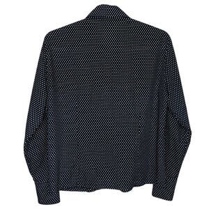 Basler Top Womens M (Bust 44") Navy Blue Polka Dot V-Neck L/S Button Down Office