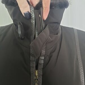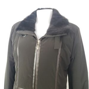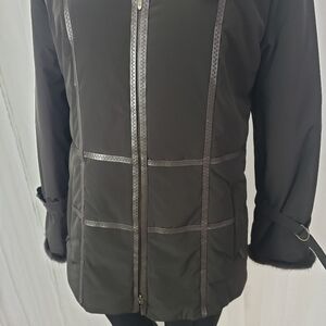 Basler black faux fur trimed jacket with faux leather trim size medium