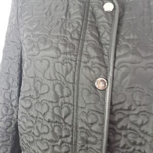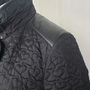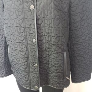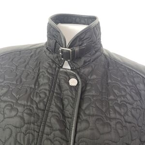 Basler black quilted moto jacket heart pattern faux leather trim size medium