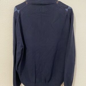 Bass Argyle Quarter Zip Pullover Sweater Blue Brown Knit Mens Size M