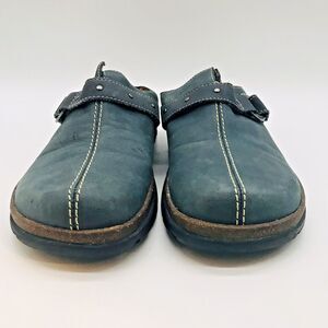 Bass Brit Mules Clogs Women's 8M Blue Leather Round Toe Casual Comfort Shoes