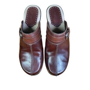 Bass Brown Leona Leather Mules Size 9