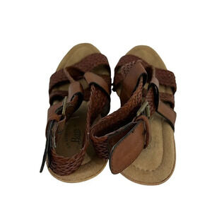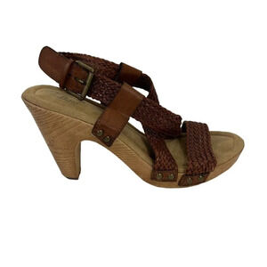 Bass Cushioned Sole Criss Cross Braided Strap Wooden Heels Size 9.5 Style Sadie