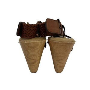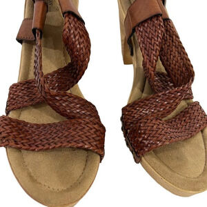 G.H. Bass & Co. Cushioned Sole Criss Cross Braided Strap Wooden Heels Size 9.5 Style Sadie.