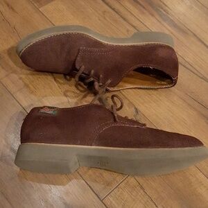 Excellent used condition! Genuine suede upper with a subtle stitching design for much added appeal.Casual oxford style with a round, plain toe. Traditional lacing system allow for easy on-and-off wear and a secure fit. Soft textile and leather lining ensures an abrasion-free environment for all-day wear. Generously padded footbed cushions the foot with each and every step you taken Durable rubberlon outsole is both light and flexible.